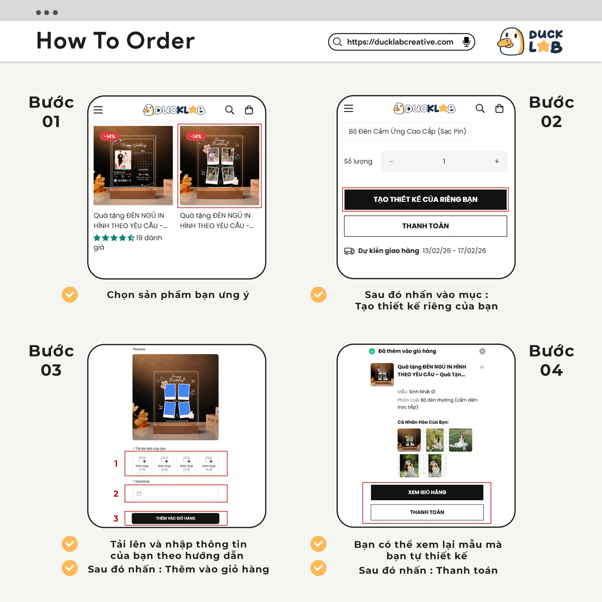 📌 Duck Lab Creative sẽ sản xuất đúng theo thiết kế bạn đã xác nhận trên website.